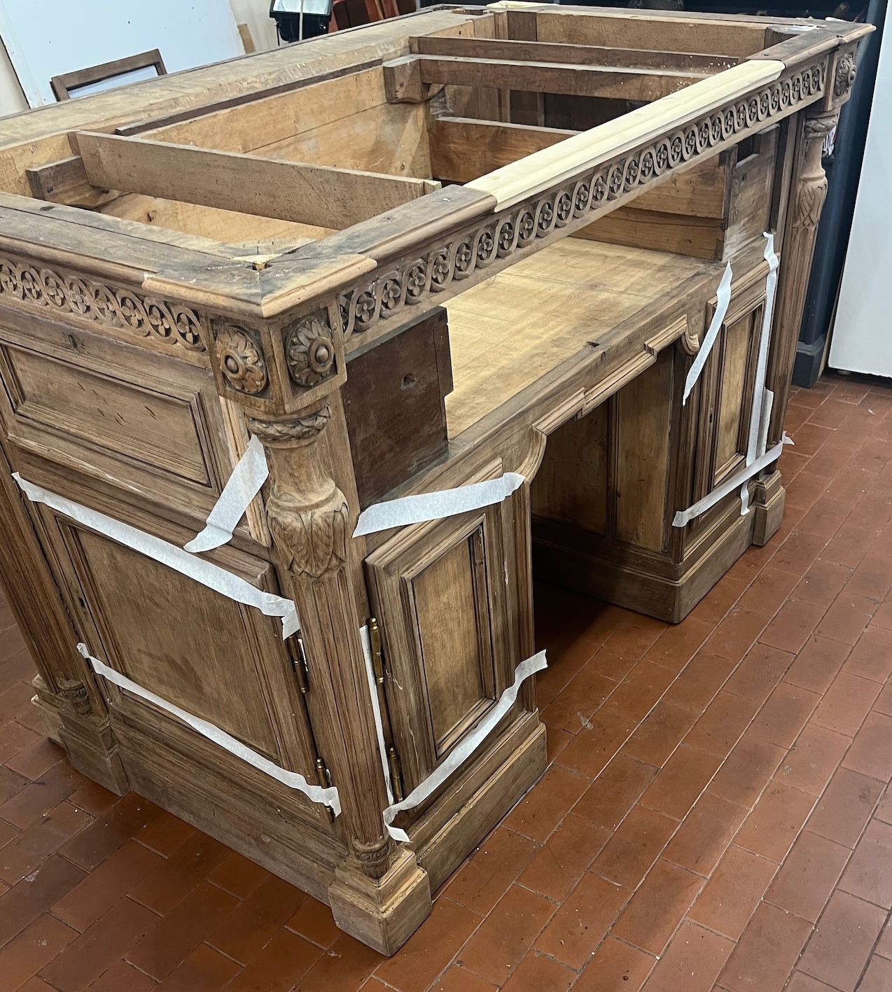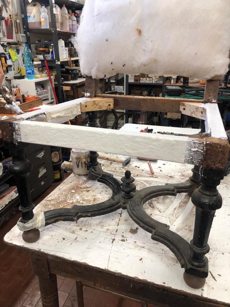 Ogni fotografia testimonia la nostra cura per il dettaglio e l'impegno nel preservare l'autenticità dei pezzi, sia che si tratti di un delicato lavoro di tappezzeria che di una complessa riparazione di falegnameria.